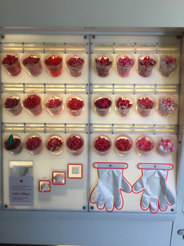 Finally, Happy Pills! The most incredible pick ‘n’ mix you will ever see! Situated in a tiny, clinically white and fluorescent store, Happy Pills allows you to fill little medicine jars or cones with your favourite sweets (all arranged according to colour, may I add) and choose a cute label and picture for the front.