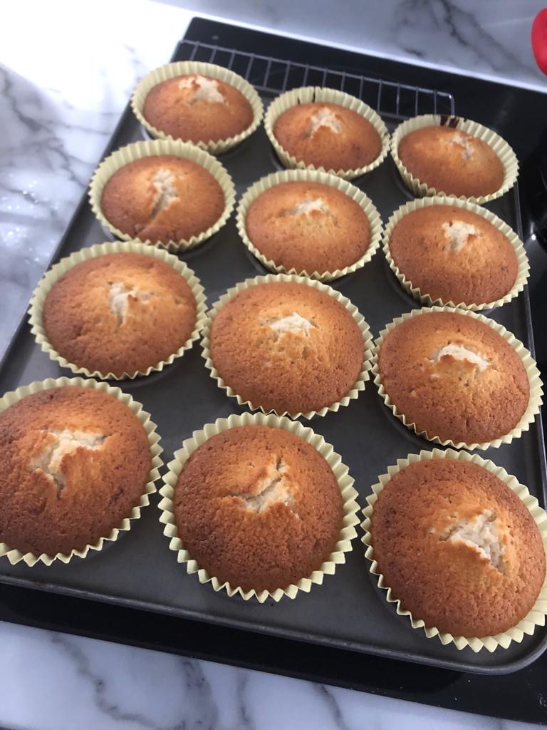 8. Mix the golden caster sugar and lemon juice in a small bowl and brush onto the tops of the cakes when they are warm and fresh out of the oven.
